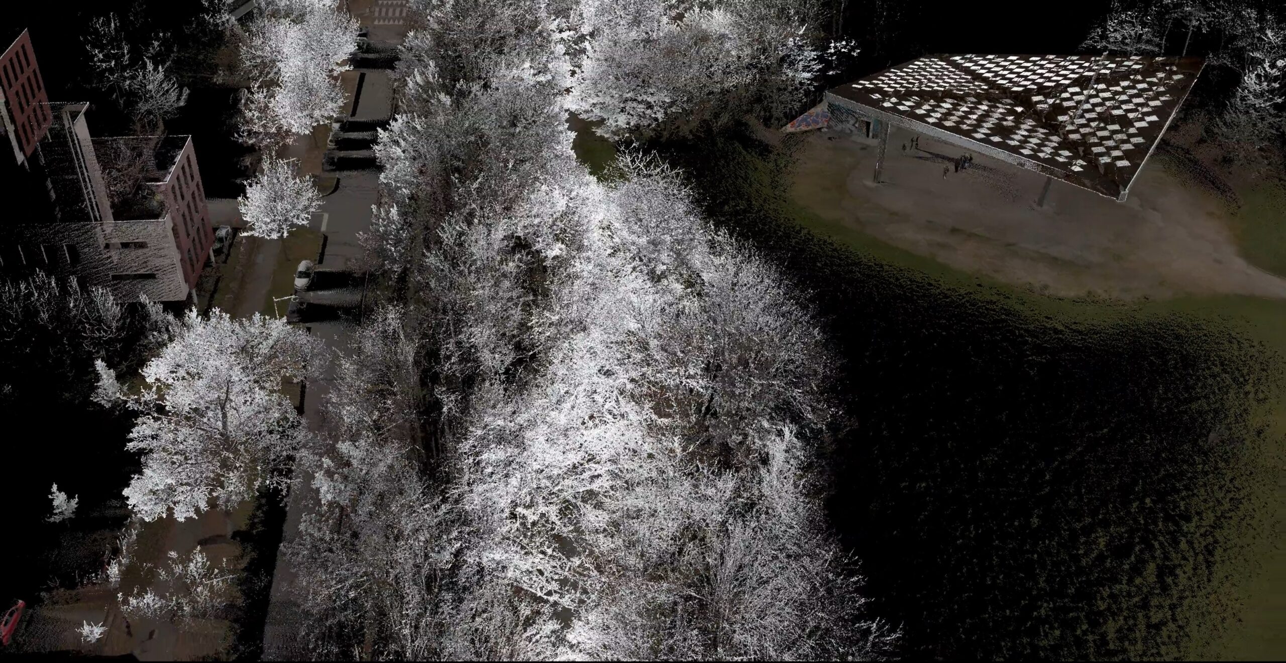 Data acquisition on-site using our mobile 3D scanner. After post-processing, we generate a geo-referenced point cloud in multiple formats: LAS, LAZ, E57, XYZ, BIN, PTS, DXF.